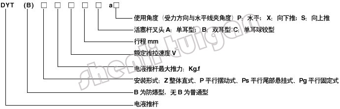 選型說明:電液推桿主要由推桿的安裝形式、電機的防護等級、額定輸出力、行程、運行速度和使用角度,六大要素組成。還可以根據用戶特殊要求配套三種調節功能。即:速度調節、行程調節(行程開關定位)。除了此三種調節功能必須在訂貨時注明要求外。其它請參照型號編制方法、方式填寫六大基本要求。