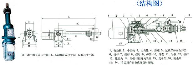 ![]() (二)DTZ型電動推桿內部構造框架圖: