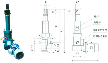 電動機輸出軸渦桿推動蝸輪蝸桿旋轉,使蝸輪蝸桿內連接的滾珠絲桿旋轉,滾珠絲桿上的螺帽在波導管所圍徑向挪動,至所需行程安排時,螺帽凸模壓下限位開關關閉電源,電機終止運行,正反面操縱同樣。